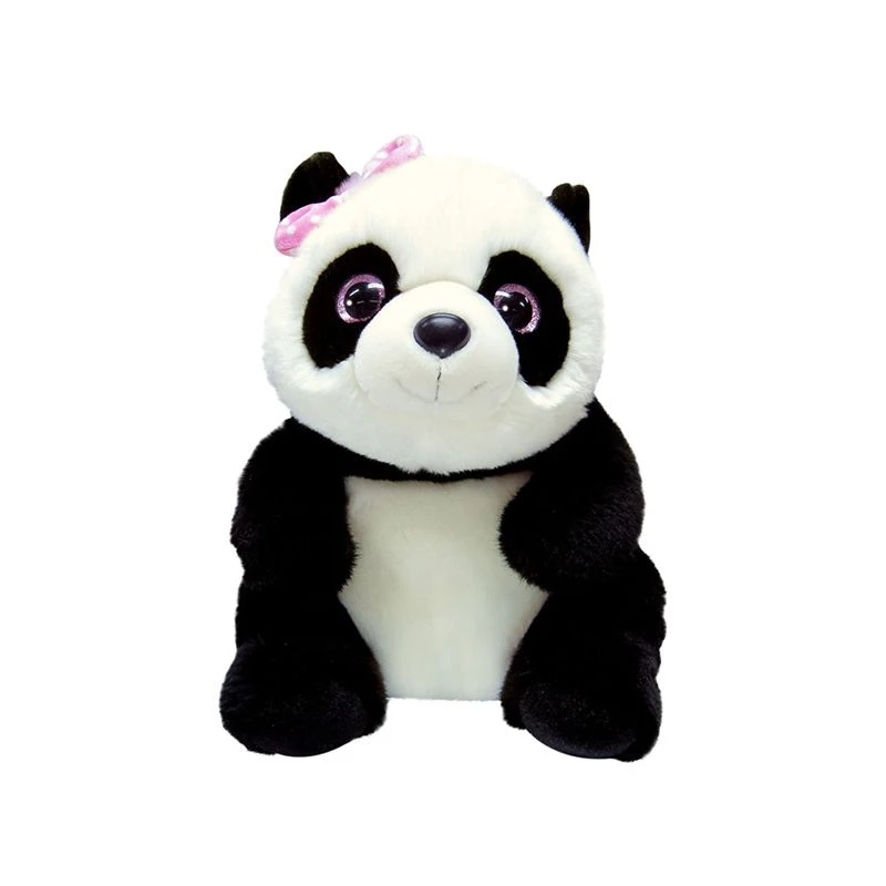 God og myk panda med søt rosa sløyfe og glitrende rosa øyne.