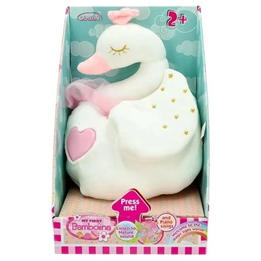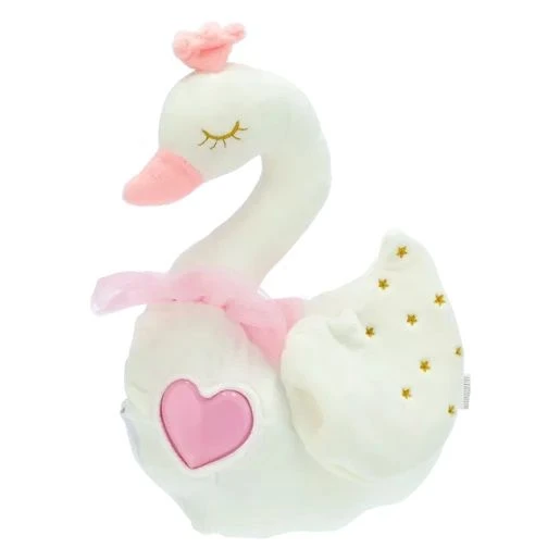 Myk svaneplysj med lys og musikk. La barnet ditt roe seg med en søt og myk svaneplysj, Ved å trykke på hjertet lyser det i mange vakre farger. Svanen kan også spille av musikk. Stimuler barnets fantasi med denne svanen.