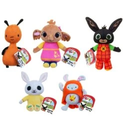 Disse søte, kosete myke plysjlekene er laget av supermykt stoff som gjør dem perfekt til kos. Bing har på seg sine rødrutete garnbuksermed den ikoniske knappen brodert pent. Flop er laget i et tekstur strikket stoff.