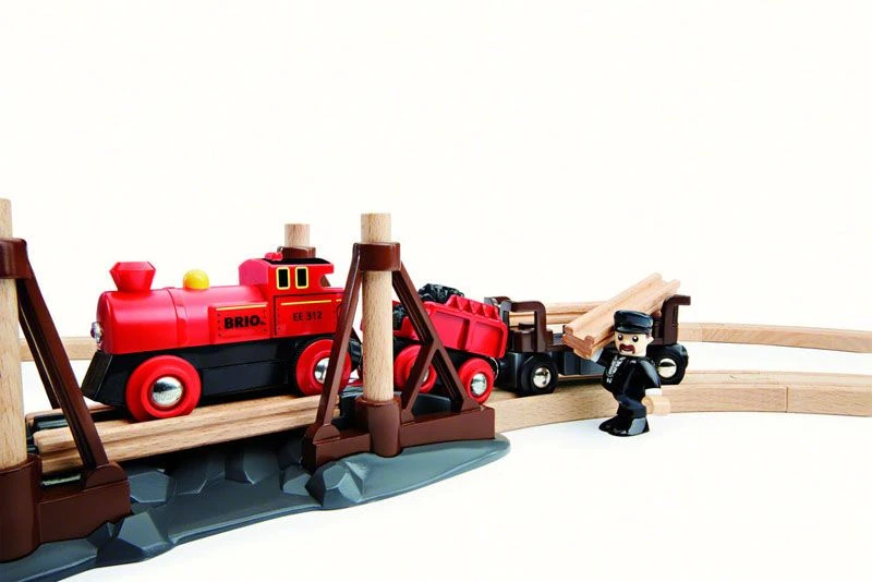 Reis tilbake i tiden med dette batteridrevne damptoget og bygg de første togskinnene! Toget venter ved broen mens du bygger ferdig togbanen. Settet inneholder 21 deler. Anbefalt alder fra 3 år.