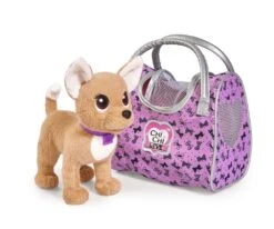 Liten søt chihuahua plysj-valp som barna kan kose med og passe på. Valpen Chi Chi Love kommer med et søtt lilla halsbånd og en nydelig veske som barna kan bære hunden sin i.