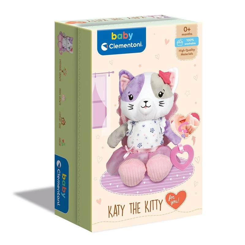 Min venn katten er en myk og trygg venn som elsker å kose. De myke vingene er perfekt for små barn som liker å klemme på ting. Det myke, rosa plasthjerte er fint å bite i for barn som får tenner. Ulike stoffer i høy kvalitet for å støtte multisensorisk utvikling.