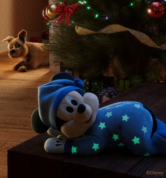 Disney Mikke Mus, den berømte musen i uimotståelig myk kvalitet, liggende og kledd i pyjamas og nattlue med lys-i-mørke stjerner. Det myke Disney-kosedyret vil hjelpe barnet ditt til å sovne med musikken sin og vil raskt bli en god venn hjemme. Mikke Mus kosedyret fra Simba Toys er 30 cm lang og passer barn fra de første månedene av livet.