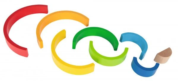 Den fargerike regnbuen i tre, inspirerer som sorterings- og stableleke! Med sterke og flotte farger tiltrekker dette stablesettet garantert barnas oppmerksomhet! De 8 buene kan sorteres eller stables på mange forskjellige måter. De fremmer barns kreativitet og finmotoriske ferdigheter.