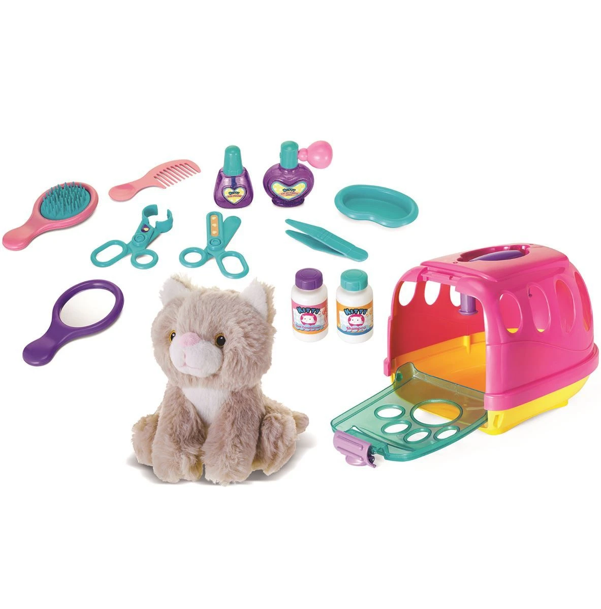 Ta med deg katten din på tur. I dette lekesettet får du med alt du trenger for å stelle katten din underveis på reisen som bur, hårkost, kam, pinsett til floker, saks og mye mer. Buret som følger med har plass til katten din og alt utstyret. Anbefalt alder: 3+