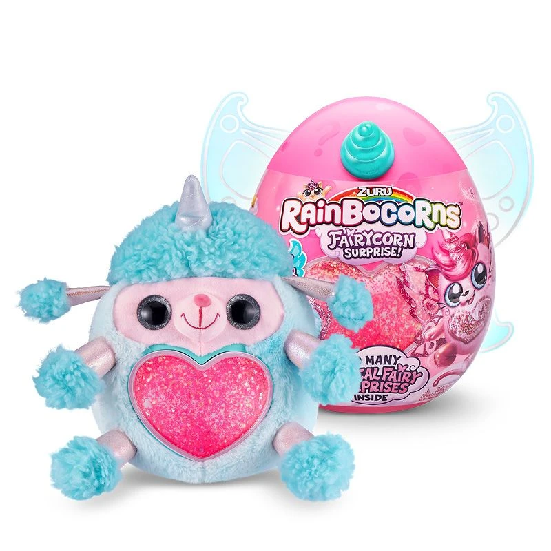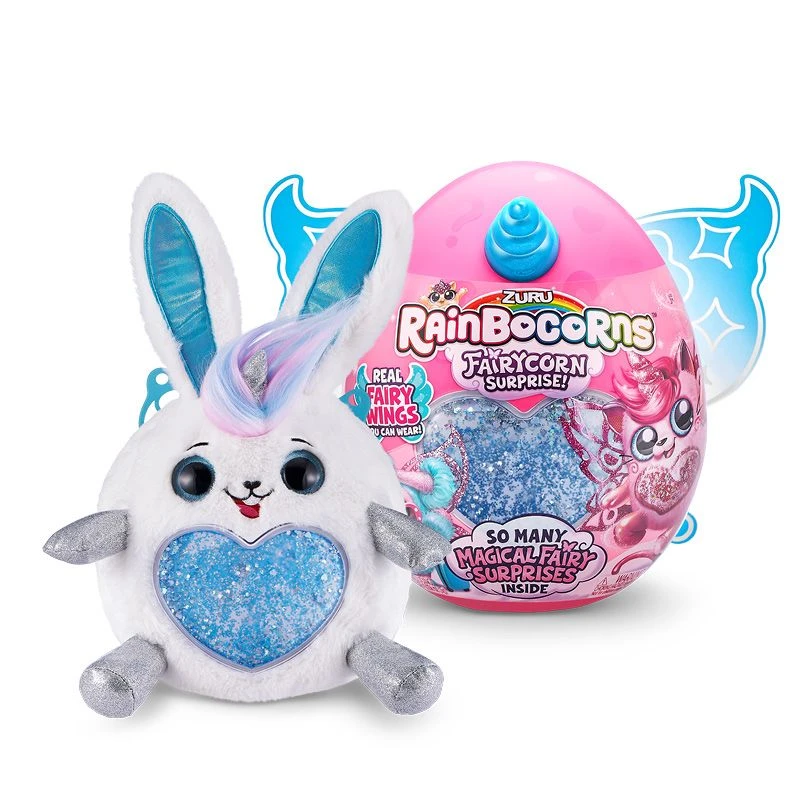 - Inkludert: 1x Rainbocorns Egg, 1x Rainbocorns Fairycorn Plush, 1x Fairy Glitter Heart-tilbehør, 1x Fairy Wings & Slips, 1x Fairy Boo-Boocorn & Egg, 1x Rainbocorn Bajs – Sukkerspinn fargeblanding, 1x klekketips, 1x klekketips.