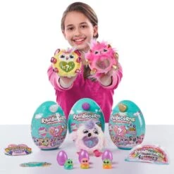 Pakk opp en myk og glitrende overraskelse med den spennende Rainbocorns Sparkle Heart Serie 2! Hver mini Rainbocorn karakter kommer med et glitrende hjerte som du kan skrelle for å avsløre en skjult overraskelse. I tillegg, inneholder hvert egg et lite miniegg med en baby Boo-BooCorns. Sparkle Hearts series 2 eggene kommer med 6 forskjellige karakterer og blir plukket ut tilfeldig.