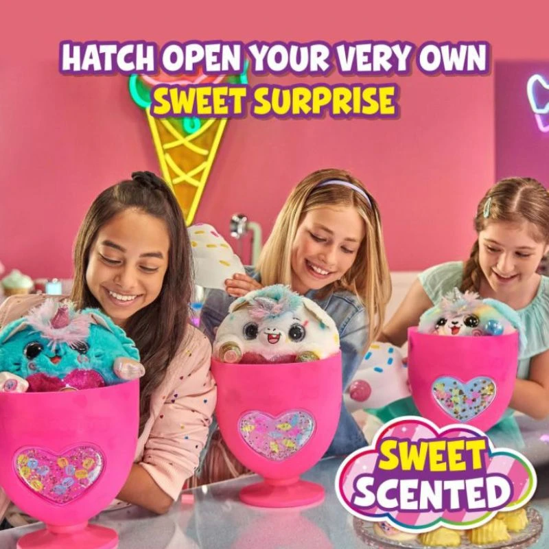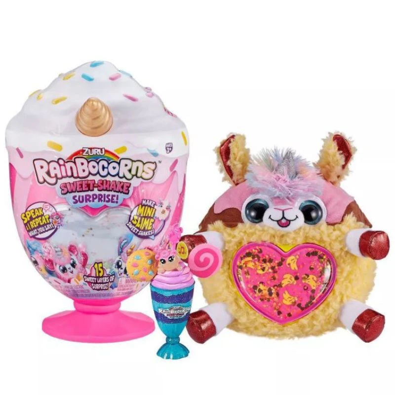 Rainbocorns Sweet Shake Surprise er fulle av mange søte overraskelser! Det er 6 nye søte figurer Ã¥ finne, inkludert Macaroon Kittycorns og Ice-cream enhjørninger, og disse Rainbocorns kan til og med snakke! Trykk pÃ¥ poten en gang for Ã¥ høre dem synge, og trykk poten to ganger for Ã¥ snakke og gjenta! Det er 15 lag med søte overraskelser Ã¥ pakke ut, inkludert nye geléhjerter, Boo-Boo dryssekorn og «lag-din-egen» Sweet Shake Slime-blanding! Hvem finner du? !