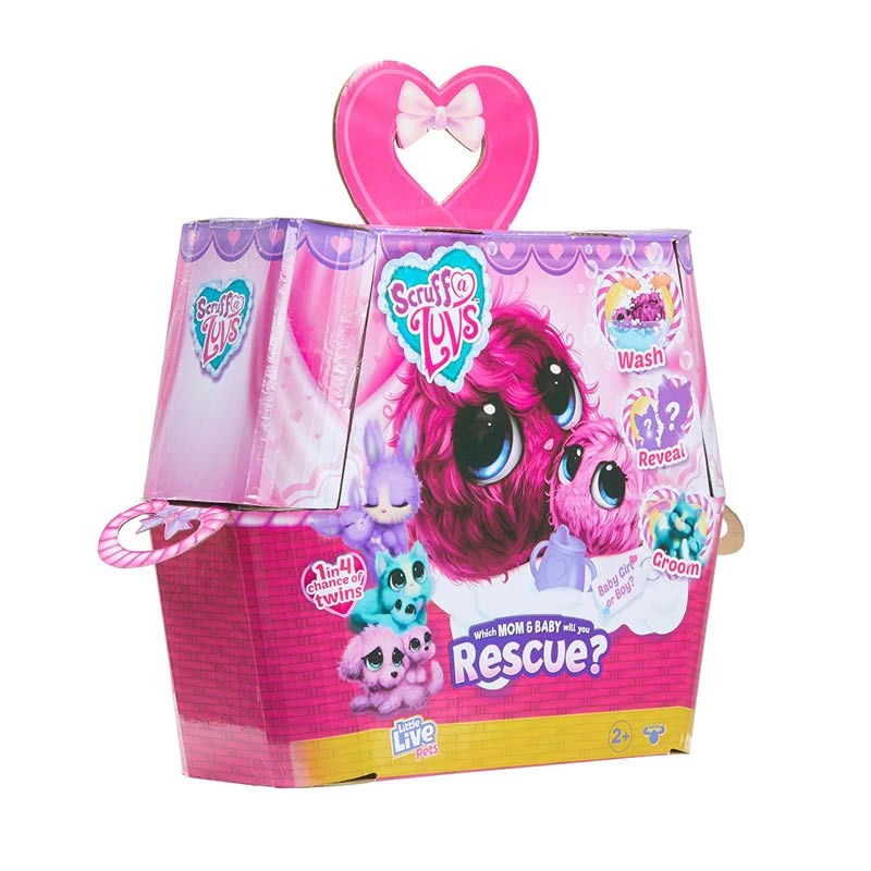 Denne forlatte Scruff’a’luv familien trenger din hjelp. Når du åpner din Scruff’a’Luvs Familie, vil den være helt sammenkrøllet. Gi den et varmt bad og masse kærlighet og omsorg. Hva er det som kommer frem i din Scruff A Luvs mage; en baby Scruff A Luvs! Kikk godt etter, for i noen sjeldne tilfeller har Scruff A Luv’en ikke bare 1 baby, men tvillinger! Når du har reddet din Scruff-a-Luvs familie, vil de være dine nye beste venner for altid! Fra 3 år.